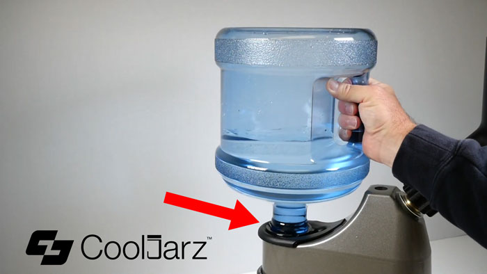 - Step 3: Remove the cap from the water bottle tank by twisting in a counter clockwise rotation. Next, fill the bottle to completion with water. The tank is about 2 gallons. Then place the cap back onto the water bottle and insert the water bottle tank into the shrink sleeve machine body.